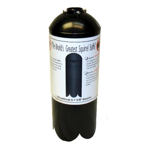This Cylindrical squirrel baffle is powder coated over fully galvanized steel sheet. Collars are solid steel and can not be chewed. Dome top cylindrical squirrel baffle for poles 1/2-inch to 1-5/8-inch diameter. Measures 6.25-Inch diameter by 16.75-Inch length. Available in black color.